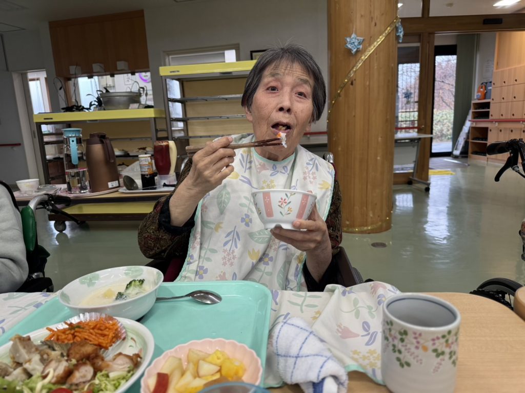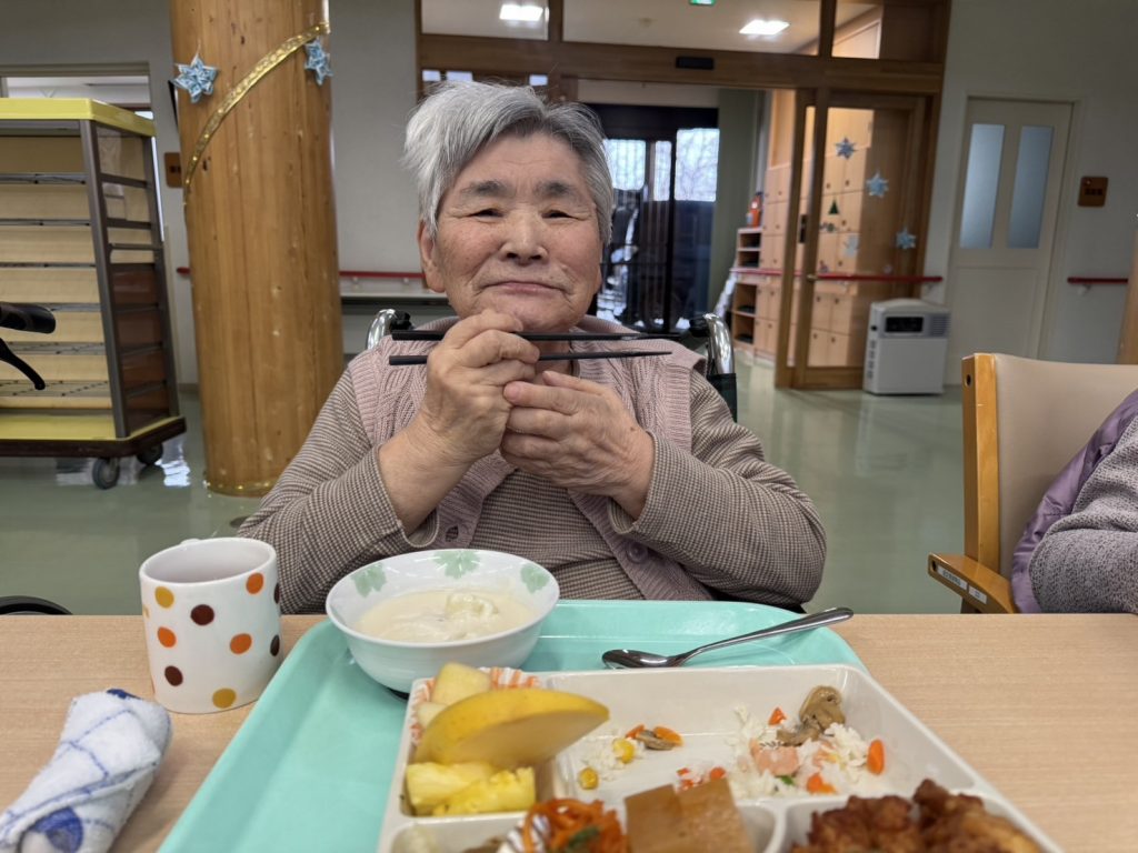25日のクリスマスは、職員も一緒にお昼ご飯をホールで食べました♪