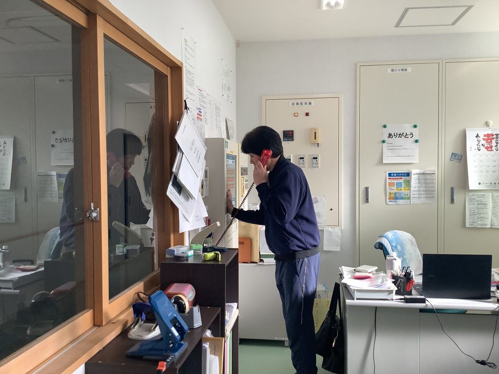 夜間想定の為、職員3人で30名を避難させます。