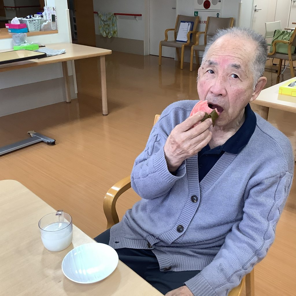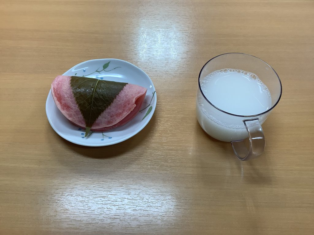 午後のおやつは有名な鎌田菓子店さんの🌸桜餅🌸。甘酒と一緒にいただきました。